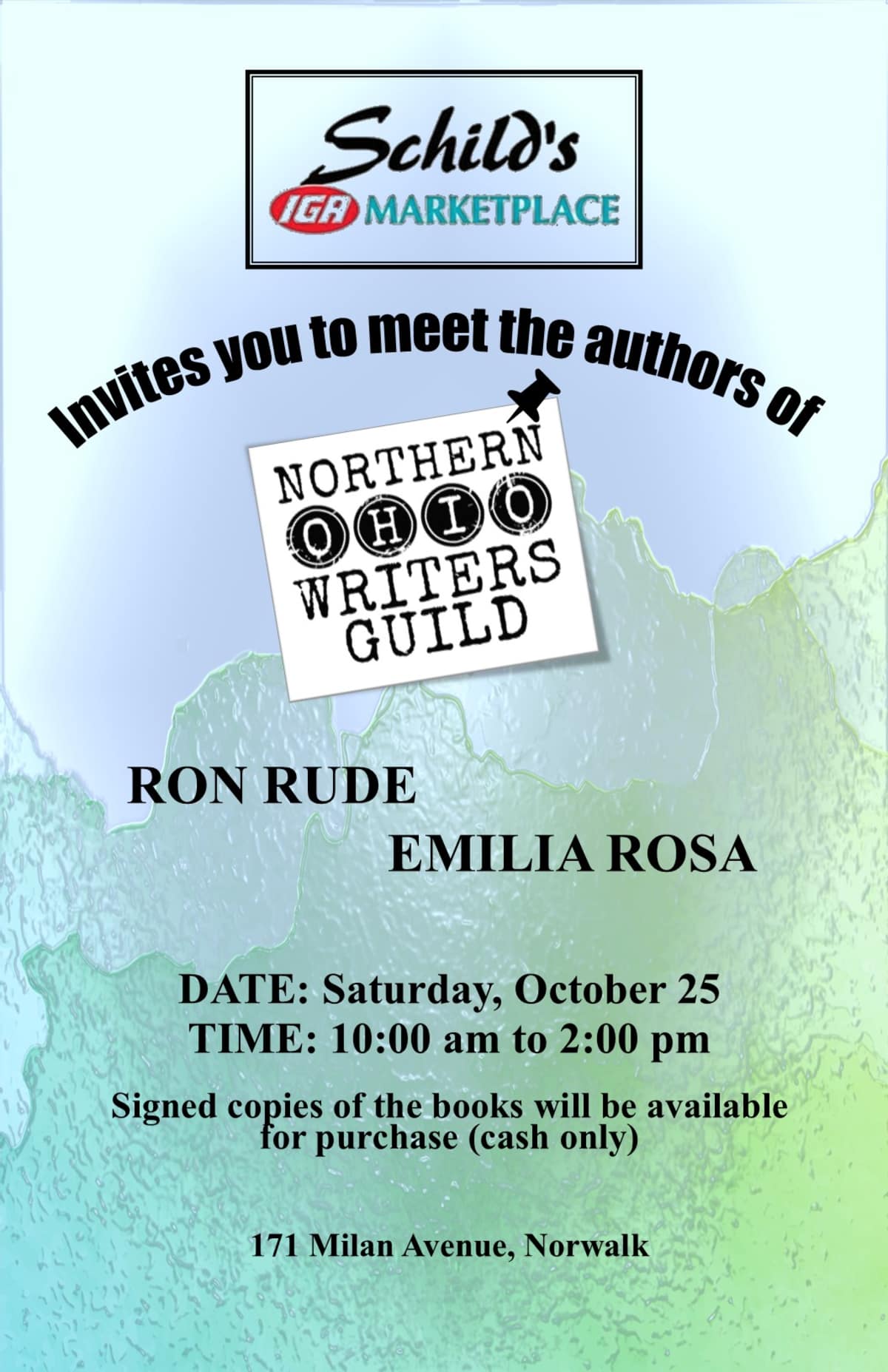 On October 25, 10am-2pm Ron Rude and I will be at IGA signing copies of our novels. Come chat with us and get copies of our books!